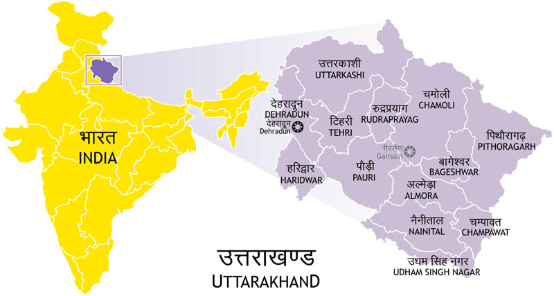 Uttarakhand, a newly formed state in 2000, shares borders with Nepal to the east and Tibet to the north.